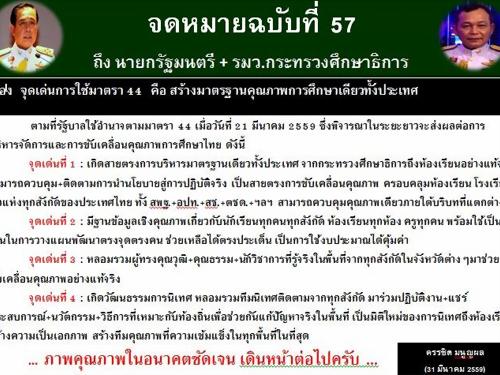 จดหมายฉบับที่ 57 ถึงนายกรัฐมนตรี+รัฐมนตรีว่าการกระทรวงศึกษาธิการ เรื่อง จุดเด่นการใช้มาตรา 44