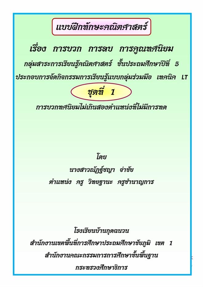 เเบบฝึกทักษะคณิตศาสตร์ เรื่อง การบวก การลบ การคูณทศนิยม ผลงานครูณัฏฐ์ชญา จ่าชัย