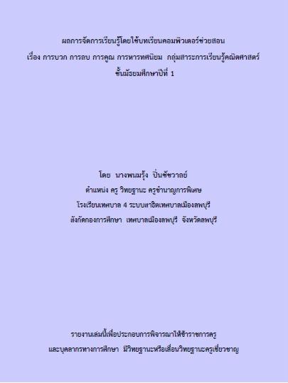 ผลการจัดการเรียนรู้โดยใช้บทเรียนคอมพิวเตอร์ช่วยสอน เรื่อง การบวก การลบ การคูณ การหารทศนิยม ผลงานครูพนมรุ้ง ปิ่นชัชวาลย์