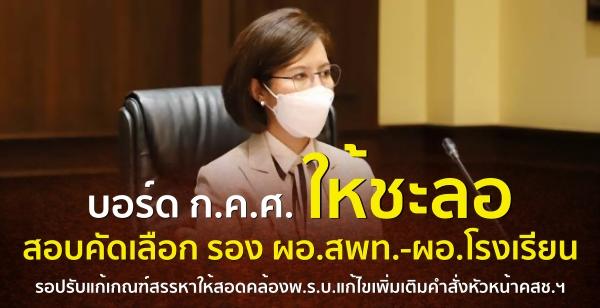บอร์ด ก.ค.ศ.ให้ชะลอสอบคัดเลือก รอง ผอ.สพท.-ผอ.โรงเรียน รอปรับแก้เกณฑ์สรรหาให้สอดคล้องพ.ร.บ.แก้ไขเพิ่มเติมคำสั่งหัวหน้าคสช.ฯ