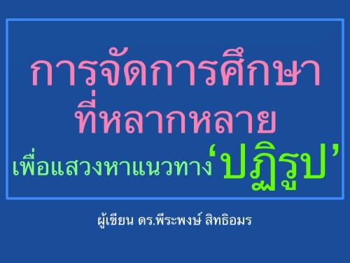การจัดการศึกษาที่หลากหลาย เพื่อแสวงหาแนวทาง ‘ปฏิรูป’ ผู้เขียน ดร.พีระพงษ์ สิทธิอมร