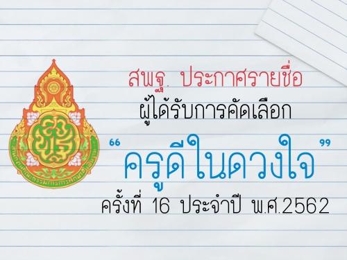 สพฐ. ประกาศ รายชื่อผู้ได้รับการคัดเลือก "ครูดีในดวงใจ" ครั้งที่ 16 ประจำปี พ.ศ.2562
