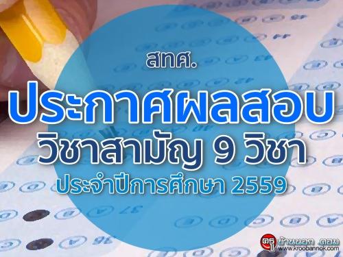 สทศ.ประกาศผลสอบวิชาสามัญ 9 วิชา ประจำปีการศึกษา 2559