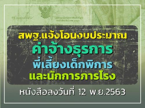 สพฐ.แจ้งโอนเงินจัดสรรงบประมาณรายจ่ายประจำปีงบประมาณ พ.ศ.2564 ค่าจ้างตำแหน่งธุรการ พี่เลี้ยงเด็กพิการและนักการภารโรง