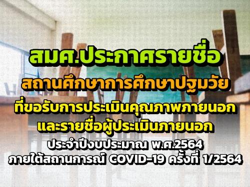 รายชื่อสถานศึกษาการศึกษาปฐมวัยที่ขอรับการประเมินคุณภาพภายนอกและรายชื่อผู้ประเมินภายนอก ประจำปีงบประมาณ พ.ศ.2564 ภายใต้สถานการณ์ COVID-19 ครั้งที่ 1/64