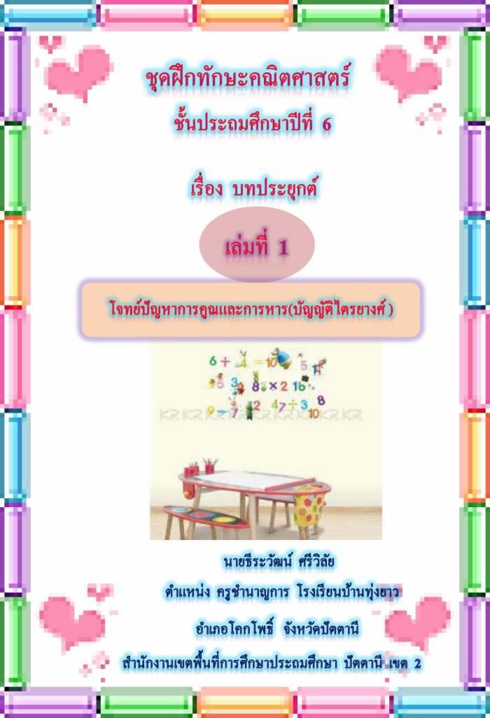 ชุดฝึกเสริมทักษะคณิตศาสตร์ ชั้นประถมศึกษาปีที่ 6 เรื่องบทประยุกต์ ผลงานครูธีระวัฒน์ ศรีวิลัย