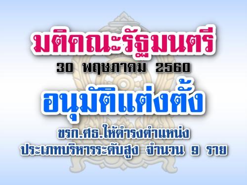 มติ ครม. 30 พฤษภาคม 2560 อนุมัติแต่งตั้งข้าราชการประเภทบริหารระดับสูง ศธ. 9 ราย