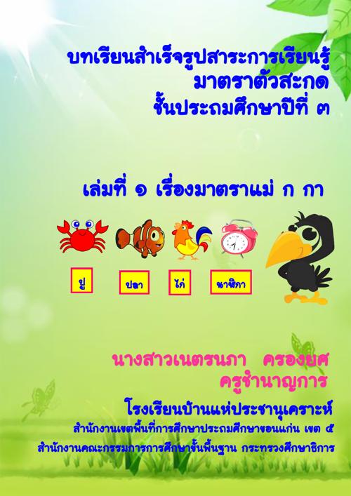 บทเรียนสำเร็จรูป กลุ่มสาระการเรียนรู้ภาษาไทย ป.3 เรื่อง การอ่านและเขียนคำในมาตราตัวสะกด ผลงานครูเนตรนภา ครองยศ