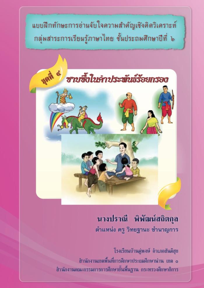 แบบฝึกทักษะการอ่านจับใจความสำคัญเชิงคิดวิเคราะห์ ภาษาไทย ป.6 ซาบซึ้งในคำประพันธ์ร้อยกรอง ผลงานครูปราณี พิพัฒน์สถิตกุล