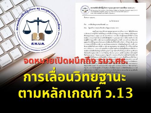 ส.พ.บ.ค. ร่อนจดหมายเปิดผนึกถึง รมว.ศธ.เรื่อง การเลื่อนวิทยฐานะตามหลักเกณฑ์ ว.13