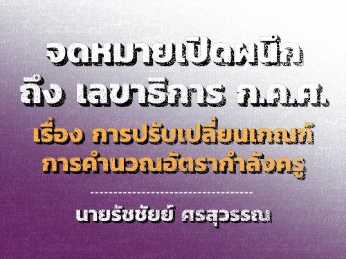 จดหมายเปิดผนึก ถึง เลขาธิการ ก.ค.ศ. เรื่อง การปรับเปลี่ยนเกณฑ์การคำนวณอัตรากำลังครู : นายรัชชัยย์ ศรสุวรรณ