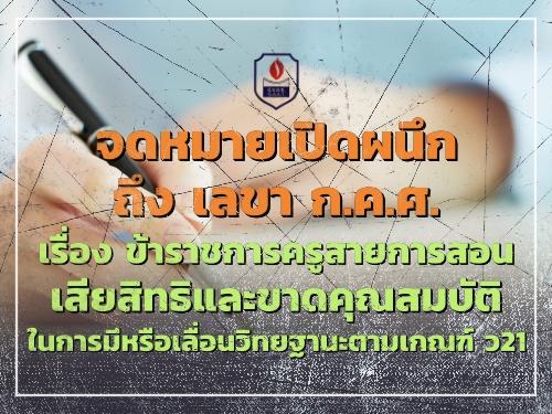 จดหมายเปิดผนึกถึงท่านเลขา ก.ค.ศ. เรื่อง ข้าราชการครูสายการสอนเสียสิทธิและขาดคุณสมบัติในการมีหรือเลื่อนวิทยฐานะตามเกณฑ์ ว21