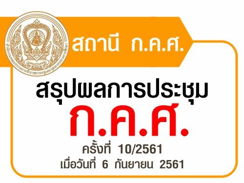 สถานี ก.ค.ศ. สรุปผลการประชุม ก.ค.ศ. ครั้งที่ 10/2561 เมื่อวันที่ 6 กันยายน 2561