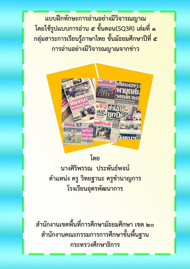 แบบฝึกทักษะการอ่านอย่างมีวิจารณญาณโดยใช้รูปแบบการอ่าน SQ3R ผลงานครูศิริพรรณ ประพันธ์พจน์