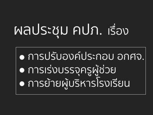 ผลประชุม คปภ.เรื่อง การปรับองค์ประกอบ อกศจ. การเร่งบรรจุครูผู้ช่วย และการย้ายผู้บริหารโรงเรียน