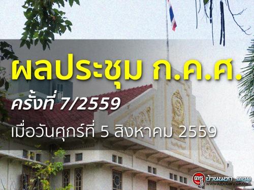 ผลประชุม ก.ค.ศ. 7/2559 เมื่อวันศุกร์ที่ 5 สิงหาคม 2559