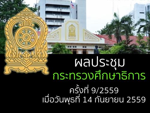 ผลประชุมกระทรวงศึกษาธิการ 9/2559 เมื่อวันพุธที่ 14 กันยายน 2559