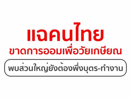 แฉคนไทยขาดการออมเพื่อวัยเกษียณ พบส่วนใหญ่ยังต้องพึ่งบุตร-ทำงาน