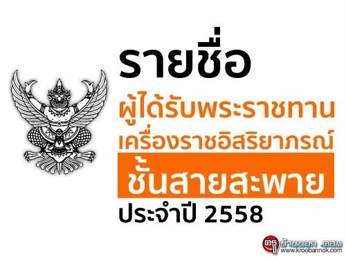 รายชื่อผู้ได้รับพระราชทานเครื่องราชอิสริยาภรณ์ชั้นสายสะพาย ประจำปี 2558