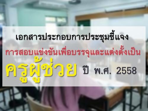 เอกสารประกอบการประชุมชี้แจงการสอบแข่งขันเพื่อบรรจุและแต่งตั้งเป็นครูผู้ช่วย ปี พ.ศ. 2558