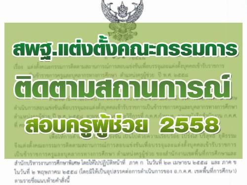 ด่วนที่สุด สพฐ.แต่งตั้งคณะกรรมการติดตามสถานการณ์สอบบรรจุครูผู้ช่วย ปีพ.ศ.2558 แล้ว