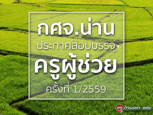 กศจ.น่าน รับสมัครสอบแข่งขันเพื่อบรรจุบุคคลเข้ารับราชการข้าราชการครูและบุคลากรทางการศึกษา ตำแหน่งครูผู้ช่วย ครั้งท่ี 1 ปี พ.ศ.2559