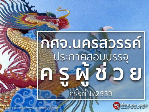 กศจ.นครสวรรค์ รับสมัครสอบแข่งขันเพื่อบรรจุบุคคลเข้ารับราชการข้าราชการครูและบุคลากรทางการศึกษา ตำแหน่งครูผู้ช่วย ครั้งท่ี 1 ปี พ.ศ.2559