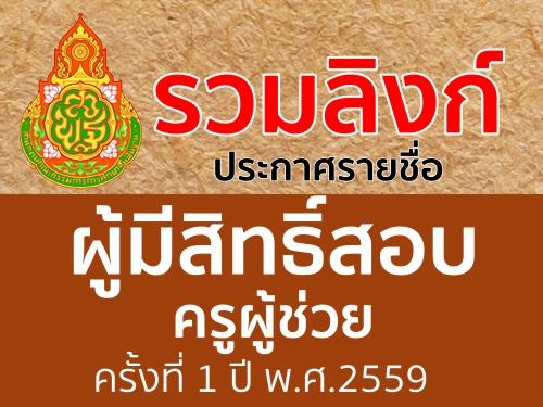 รวมลิงก์ประกาศผู้มีสิทธิ์สอบแข่งขันเข้ารับราชการเป็นครูผู้ช่วย ครั้งที่ 1 ปี พ.ศ.2559