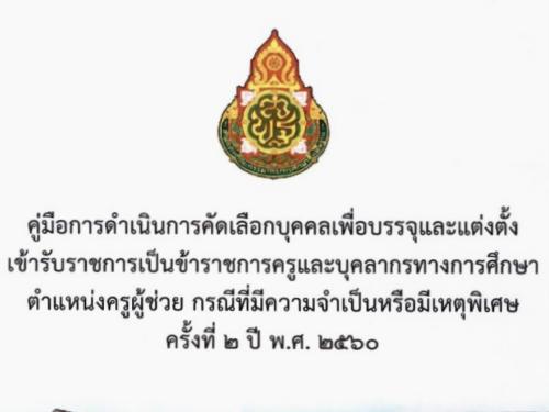 คู่มือการดำเนินการคัดเลือกบุคคลเพื่อบรรจุและแต่งตั้งฯ ครูผู้ช่วย กรณีที่มีความจำเป็นหรือมีเหตุพิเศษ ครั้งที่ 2 ปี พ.ศ. 2560