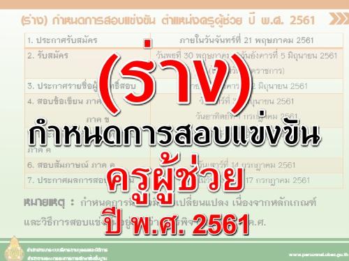 (ร่าง) กำหนดการสอบแข่งขัน ตำแหน่งครูผู้ช่วย ปี พ.ศ. 2561