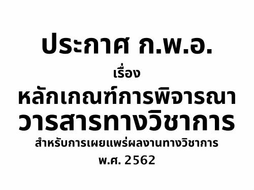 ประกาศ ก.พ.อ. เรื่อง หลักเกณฑ์การพิจารณาวารสารทางวิชาการ สำหรับการเผยแพร่ผลงานทางวิชาการ พ.ศ. 2562