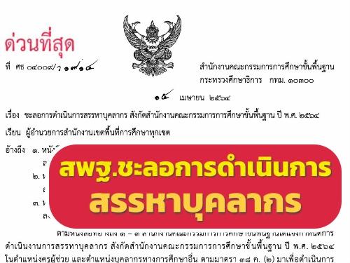 ด่วนที่สุด เรื่องชะลอการดำเนินการสรรหาบุคลากร สังกัด สพฐ. ปี พ.ศ. 2564