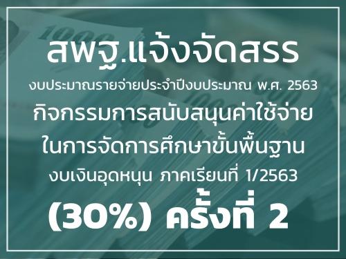 สพฐ.จัดสรรงบประมาณ กิจกรรมการสนับสนุนค่าใช้จ่ายในการจัดการศึกษาขั้นพื้นฐานภาคเรียนที่ 1/2563 (30%) ครั้งที่ 2
