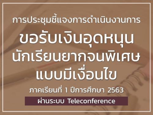 การประชุมชี้แจงการดำเนินงานการขอรับเงินอุดหนุนนักเรียนยากจนพิเศษแบบมีเงื่อนไข ภาคเรียนที่ 1 ปีการศึกษา 2563 ผ่านระบบ Teleconference