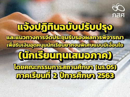 แจ้งปฏิทินฉบับปรับปรุงและแนวทางการจัดประชุมรับรองผลการพิจารณานักเรียนทุนเสมอภาคโดยคณะกรรมการสถานศึกษา (นร.05) ภาคเรียนที่ 2/2563