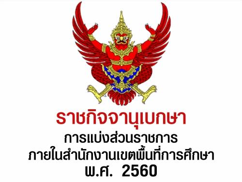 ราชกิจจานุเบกษา เผยแพร่ประกาศกระทรวงศึกษาธิการ เรื่อง การแบ่งส่วนราชการภายในสำนักงานเขตพื้นที่การศึกษา พ.ศ. 2560
