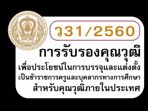 ว31/2560 การรับรองคุณวุฒิเพื่อประโยชน์ในการบรรจุและแต่งตั้งเป็นข้าราชการครูและบุคลากรทางการศึกษาสำหรับคุณวุฒิภายในประเทศ