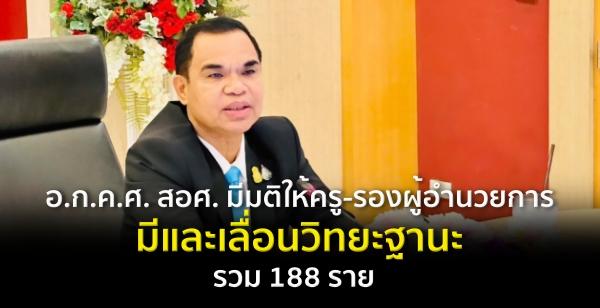 อ.ก.ค.ศ. สอศ. มีมติให้ครู-รองผู้อำนวยการ มีและเลื่อนวิทยะฐานะ รวม 188 ราย