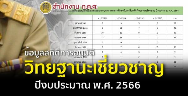ก.ค.ศ.เผยข้อมูลสถิติการอนุมัติให้ข้าราชการครูและบุคลากรทางการศึกษามีและเลื่อนเป็นวิทยฐานะเชี่ยวชาญ ปีงบประมาณ พ.ศ. 2566