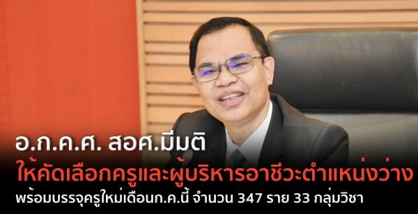 อ.ก.ค.ศ. สอศ.มีมติให้คัดเลือกครูและผู้บริหารอาชีวะตำแหน่งว่าง พร้อมบรรจุครูใหม่เดือนก.ค.นี้ จำนวน 347 ราย 33 กลุ่มวิชา