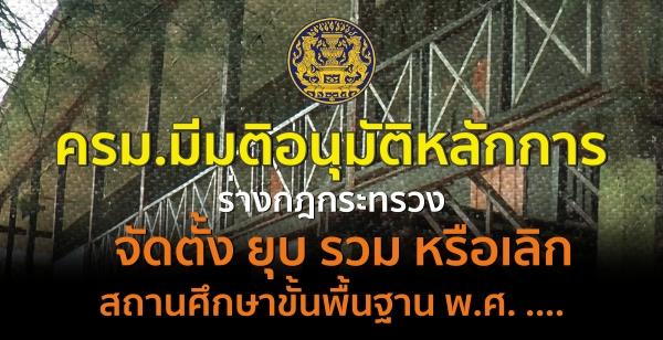 ครม.มีมติอนุมัติหลักการร่างกฎกระทรวงจัดตั้ง ยุบ รวม หรือเลิกสถานศึกษาขั้นพื้นฐาน พ.ศ. ....