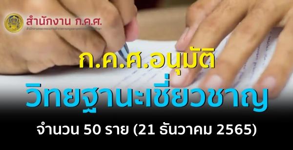 ก.ค.ศ. อนุมัติให้ข้าราชการครูและบุคลากรทางการศึกษามีและเลื่อนเป็นวิทยฐานะเชี่ยวชาญ เมื่อวันพุธที่ 21 ธันวาคม 2565 จำนวน 50 ราย