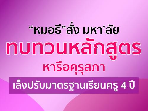 "หมอธี" สั่ง มหาลัยทบทวนหลักสูตร หารือคุรุสภา เล็งปรับมาตรฐานเรียนครู 4 ปี อ่านต่อคลิก[23 มี.ค. 2560](อ่าน 43,785 ครั้ง) (0.51%-314 ผู้โหวต) |