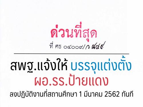 สพฐ.แจ้งให้บรรจุแต่งตั้ง ผอ.รร.ป้ายแดง ลงปฏิบัติงานที่สถานศึกษา 1 มีนาคม 2562 ทันที