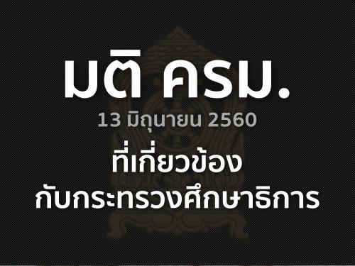 มติ ครม. 13 มิถุนายน 2560 ที่เกี่ยวข้องกับกระทรวงศึกษาธิการ