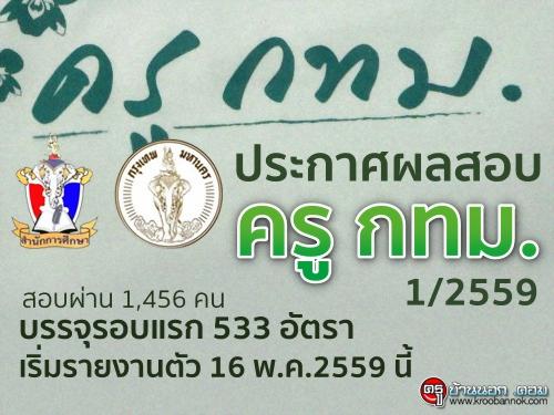 ประกาศผลสอบครู กทม. 1/2559 สอบผ่าน 1,456 คน บรรจุรอบแรก 533 อัตรา เริ่มรายงานตัว 16 พ.ค.2559 นี้