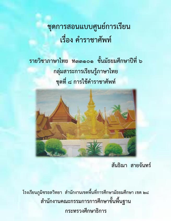 ชุดการสอนแบบศูนย์การเรียน เรื่อง คําราชาศัพท์ ม.6 ผลงานครูสันธิฌา สายจันทร์
