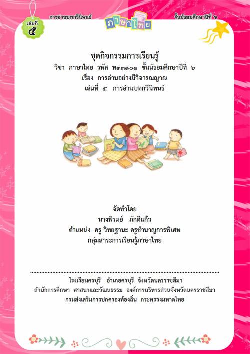 ชุดกิจกรรมการเรียนรู้ เรื่อง การอ่านอย่างมีวิจารณญาณ วิชาภาษาไทย ม.6 ผลงานครูพิรมย์ ภักดีแก้ว