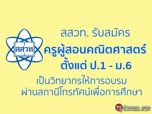 สสวท. รับสมัครครูผู้สอนคณิตศาสตร์ ตั้งแต่ ป.1 - ม.6 เป็นวิทยากรให้การอบรมผ่านสถานีโทรทัศน์เพื่อการศึกษา