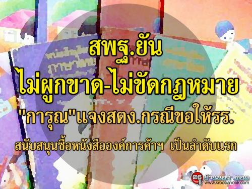 สพฐ.ยันไม่ผูกขาด-ไม่ขัดกฎหมาย"การุณ"แจงสตง.กรณีขอให้รร.สนับสนุนซื้อหนังสือองค์การค้าฯ เป็นลำดับแรก